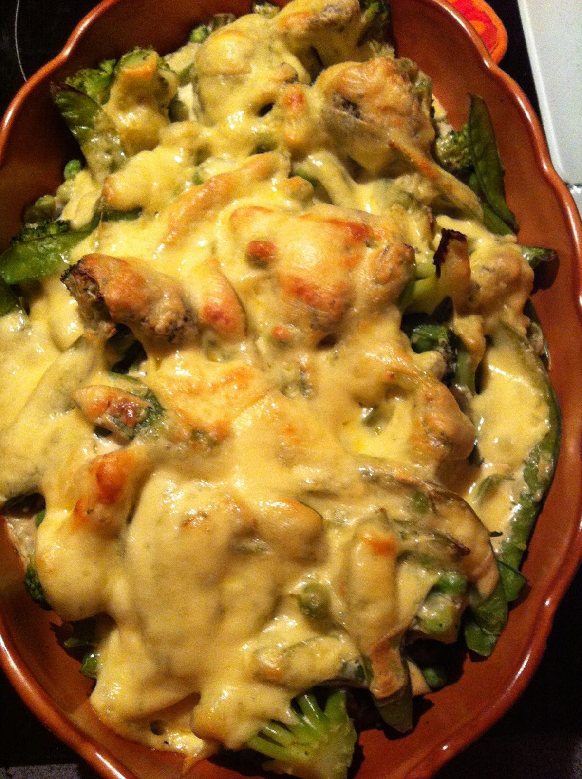 Die Nudeln in Salzwasser so lange kochen bist sie noch etwas mehr als bißfest sind (sie garen im Ofen ja noch weiter). Das Gemüse in Salzwasser blanchieren. Die Nudeln in eine Auflaufform geben, das Gemüse darüber. Dann die Sahne in einem Topf erhitzen, den Kräuterschmelzkäse in kleinen Stückchen dazugeben und solange rühren bis eine er geschmolzen ist. Mit Salz, Pfeffer und Muskat abschmecken. Über das Gemüse geben. Den Gouda darauf verteilen und für ca. 20 min im Ofen bei 200 Grad überbacken bis der Käse gut aussieht 🙂