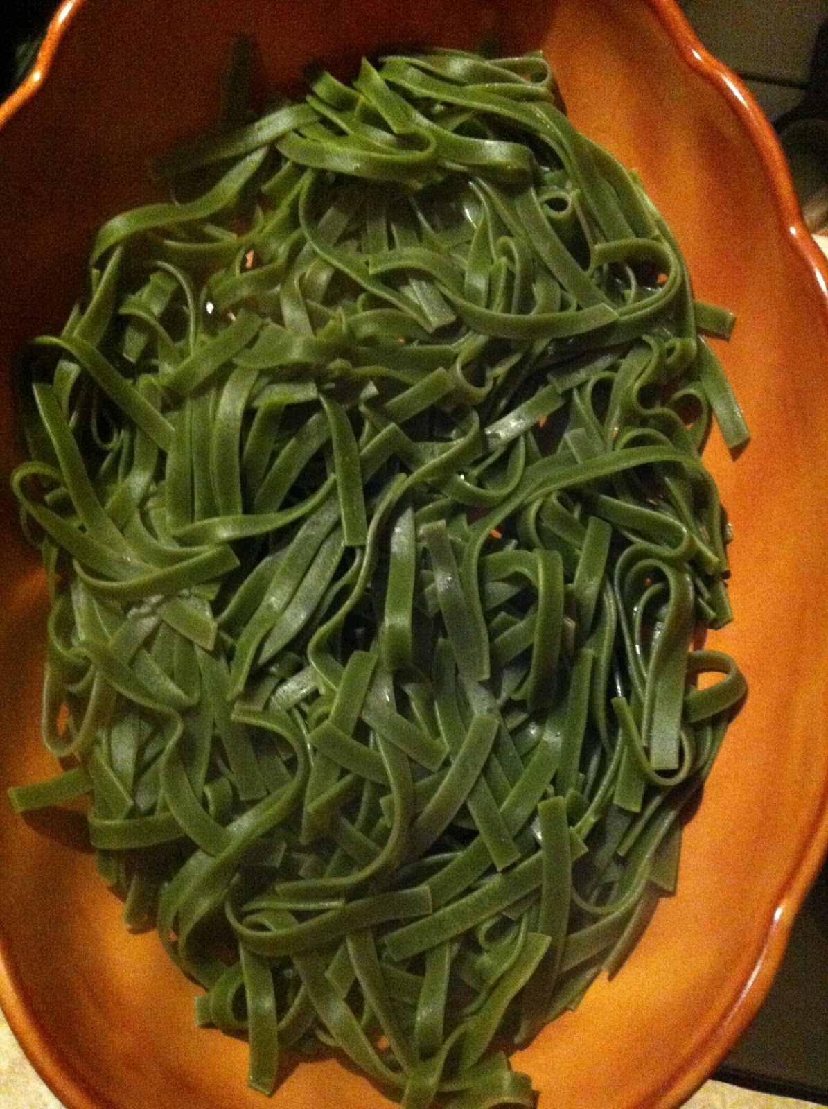 Ich weiß nicht wie ich das heutige Essen nennen soll ^^ Heute wollte ich „was grünes“ kochen. Spontan fiel mir dazu Brokkoli, Romanesco, Zuckerschoten, Erbsen und grüne Nudeln ein. Da ich es im Rahmen halten wollte preislich, habe ich jeweils einen Beutel Brokkoli und Zuckerschoten gekauft – und natürlich grüne Nudeln 🙂 Hier nun das Ergebnis:
