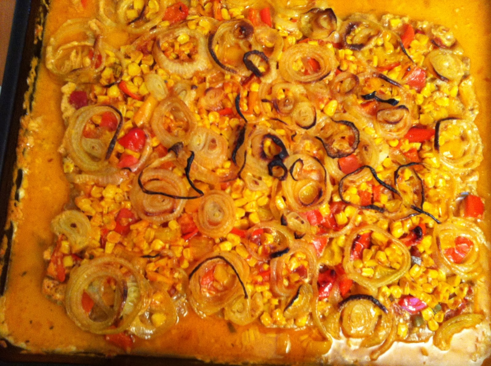 Tomaten, Paprika, Mais, Pilze, Zwiebeln.