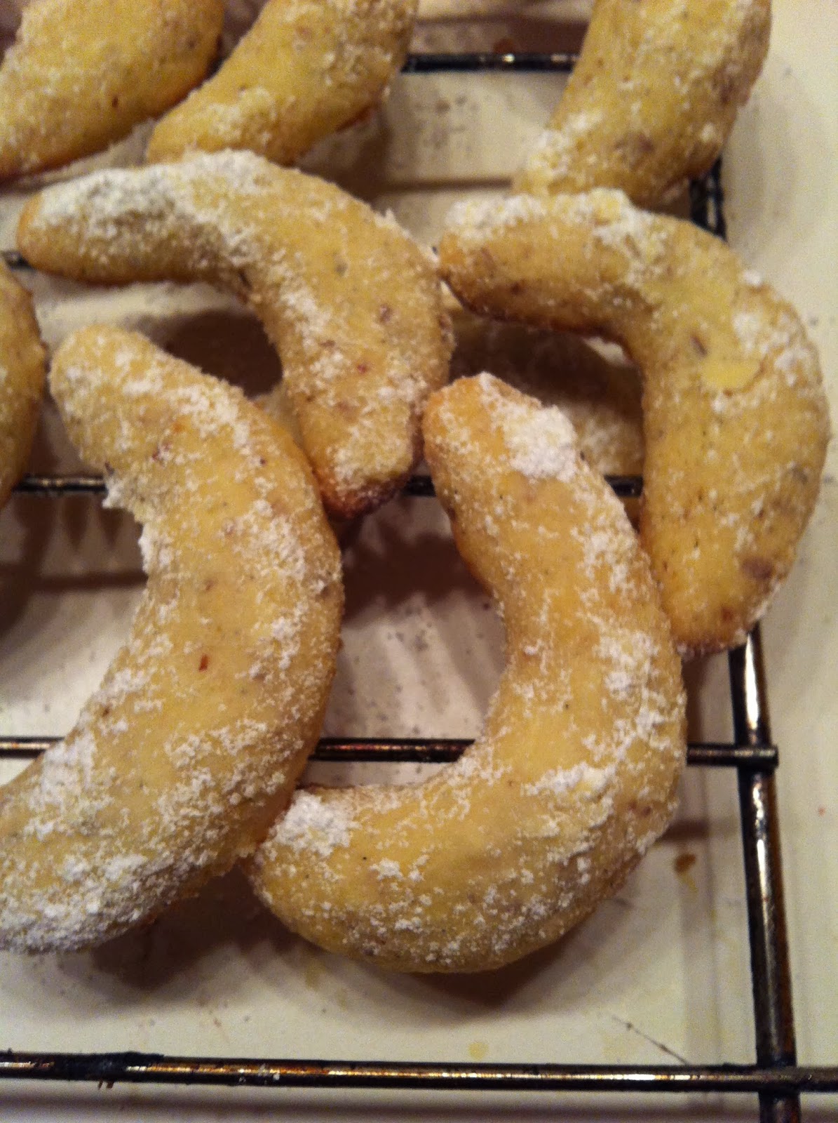 Die Vanillekipferl habe ich übrigens als Resteverwertung gemacht. Ich hatte von einem gebackenen Kuchen noch eine Meeeeeeeeeeeeenge Eigelb über und das habe ich komplett in die Kipferl getan. Sie haben geklebt wie sonst was, aber geschmacklich waren sie super^^