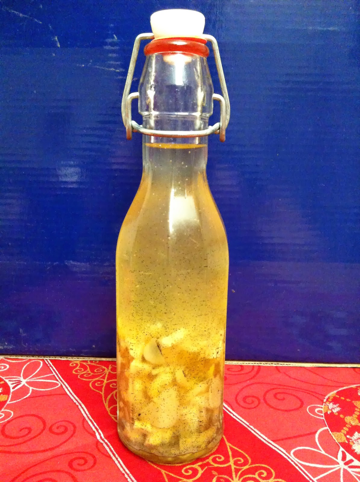 Das letzte „Eingekochte“ war dann das Vanille-Ingwer-Knoblauch-Öl. Auch dieses habe ich bei Wolkenfee gefunden. Ich fand die Kombination einfach hochinteressant und hatte zwei Fläschchen geplant. Letztlich ist es doch nur eins geworden und ich habe mich auch noch nicht ans Probieren getraut ^^.