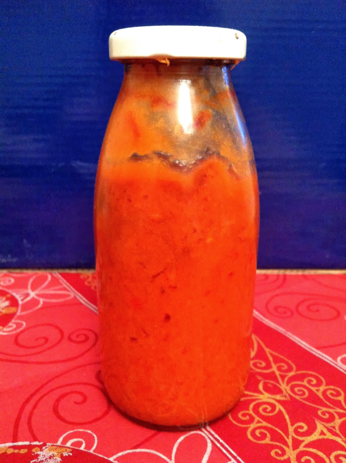 Das Nächste was ich in Angriff nahm, war der Pfirsichketchup. Dieses Rezept gab es bei Bengelchens Chaosleben. Eine wirklich tolle Idee, aber weil natürlich nicht wirklich saisonal wenn man im Winter mit Pfirsichen kochen will… Letztlich habe ich Pfirsiche aus der Dose genommen und dafür den im Rezept angegebenen Zucker weg gelassen.