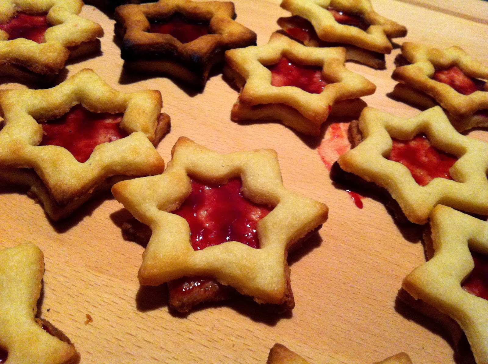 So das wars eigentlich schon fast mit den Plätzchen. Als letztes habe ich unser altes Familienrezept für Spitzbuben (mit Marmelade gefüllte Plätzchen). Sie sind relativ aufwendig und natürlich immer als erstes leer – etwas deprimierend …