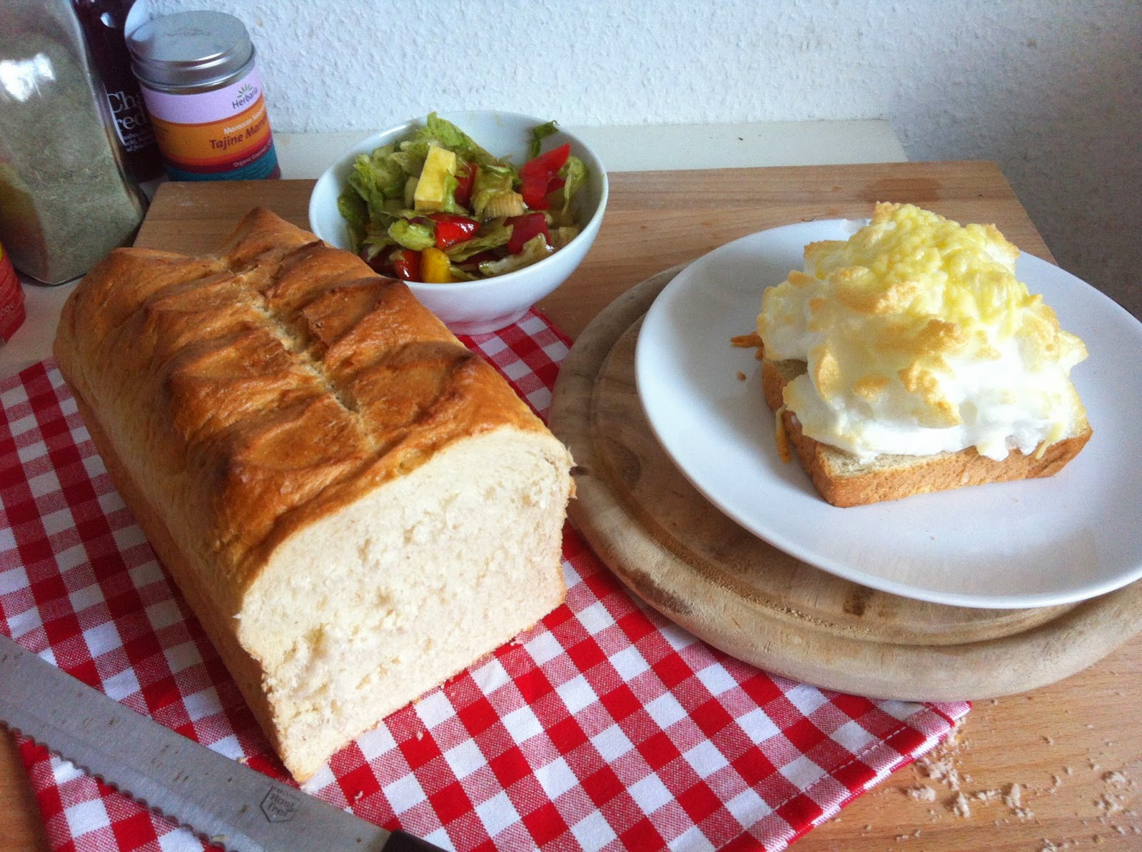 Ich habe zwar das Würzen vergessen, aber das machte nichts. Salz und Pfeffer stehen bei uns immer auf dem Tisch. Es schmeckt aber auch nur mit dem leicht salzigen vom Käse.