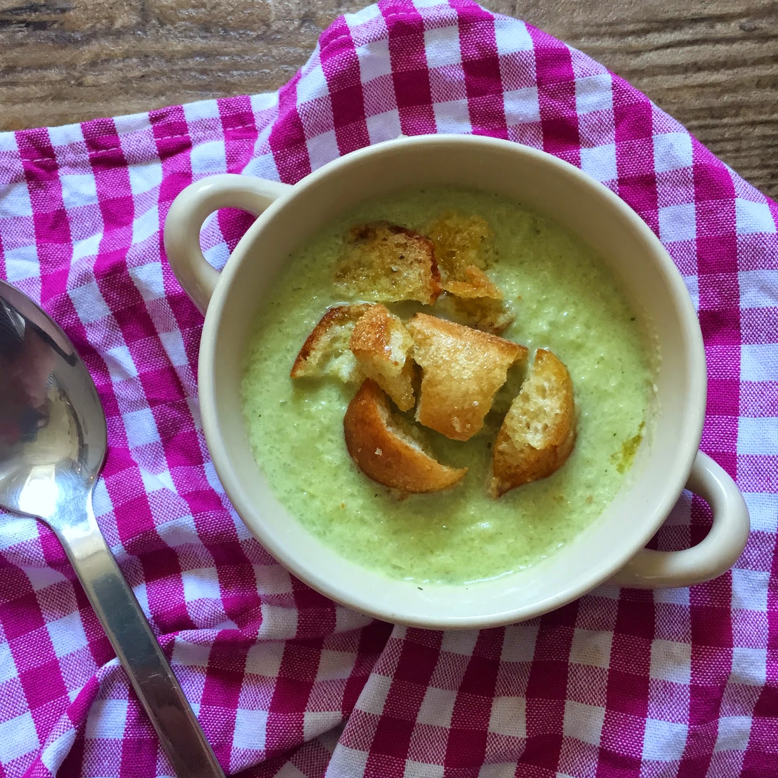 Hier sieht man übrigens eine tolle Verwertung von alten Brötchen – aufschneiden, anbraten und als Croutons in die Suppe geben 🙂 – in diesem Fall Kohlrabisuppe mit Matcha.