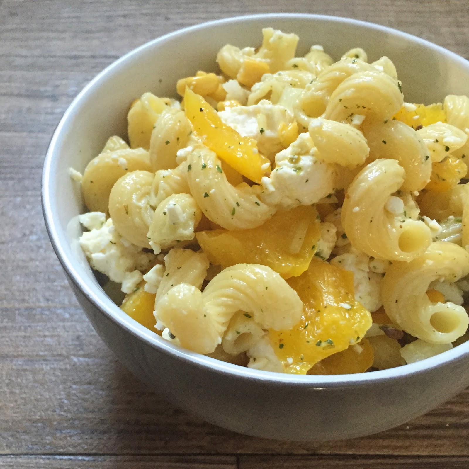Die Paprika habe ich leider so lange liegen gelassen das 1 von 3 Schoten bereits angeschimmelt war, die anderen beiden waren schon ordentlich verschrumpelt. Deshalb hab ich sie mit Zwiebel, Feta und Gartenkräuterdressing im Nudelsalat versteckt.