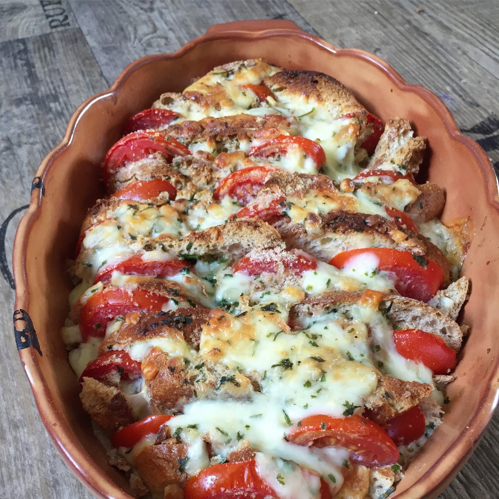 So erinnert Ihr Euch an die übrig gebliebenen Brötchen die ich hart werden lies? Die sind in diesem Gericht gelandet. Eigentlich sollte da ja frisches Aufback-Ciabatta und Champignons rein. Ich hab die hart gewordenen Brötchen und Mozzarella genommen. Das Rezept dazu findet Ihr hier – es ist das erste Mal, dass ich nach einem Video gekocht habe 🙂