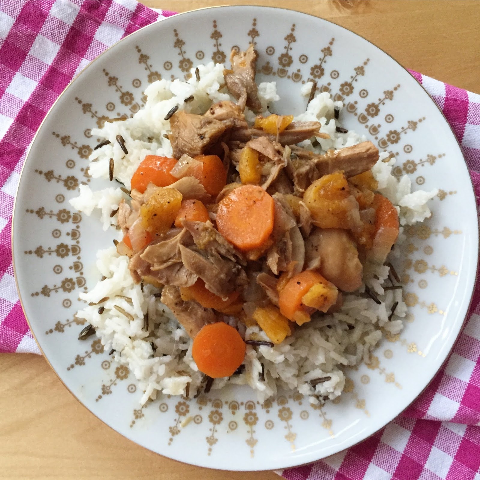 In dieser Tafeltüte hatte ich eine Packung getrocknete Aprikosen drin. In dem Moment wo ich sie gesehen habe, hatte ich Bock auf Hähnchenschmortopf mit Aprikosen und Mandeln. Das Rezept ist schon ewig auf dem Blog, hat schon mal neue Fotos bekommen und ich esse es immer wieder gern.